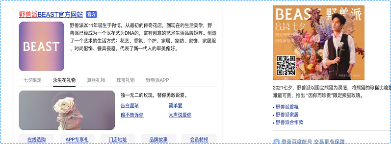 位于百度搜索结果首位,以超大黄金首屏展示推广信息